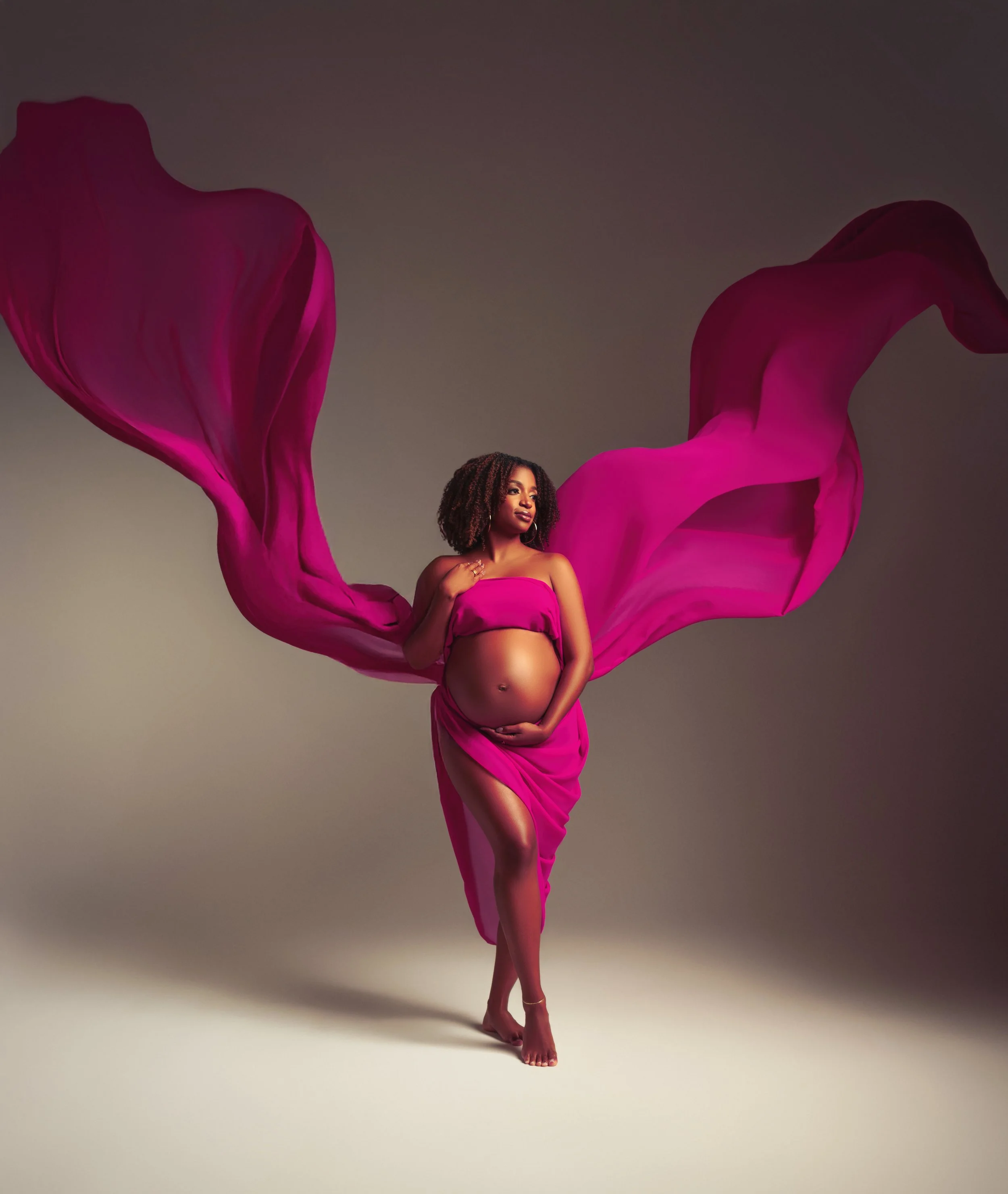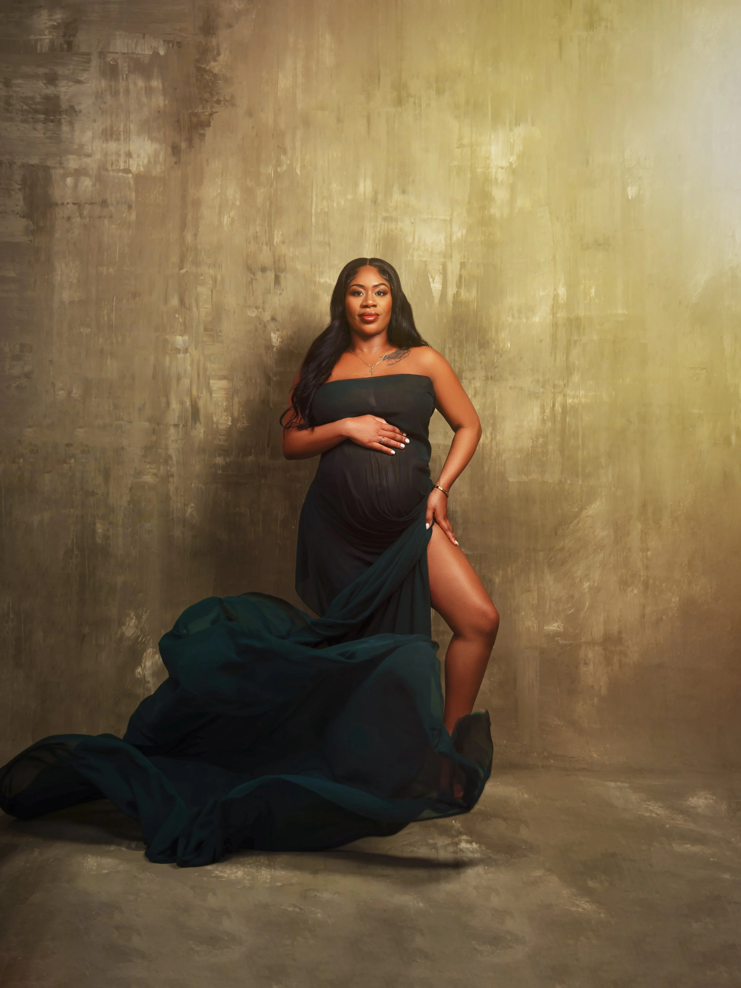 This limited maternity experience is designed for expecting mothers who want elevated, studio portraits without the stress of gown shopping or knowing how to pose.